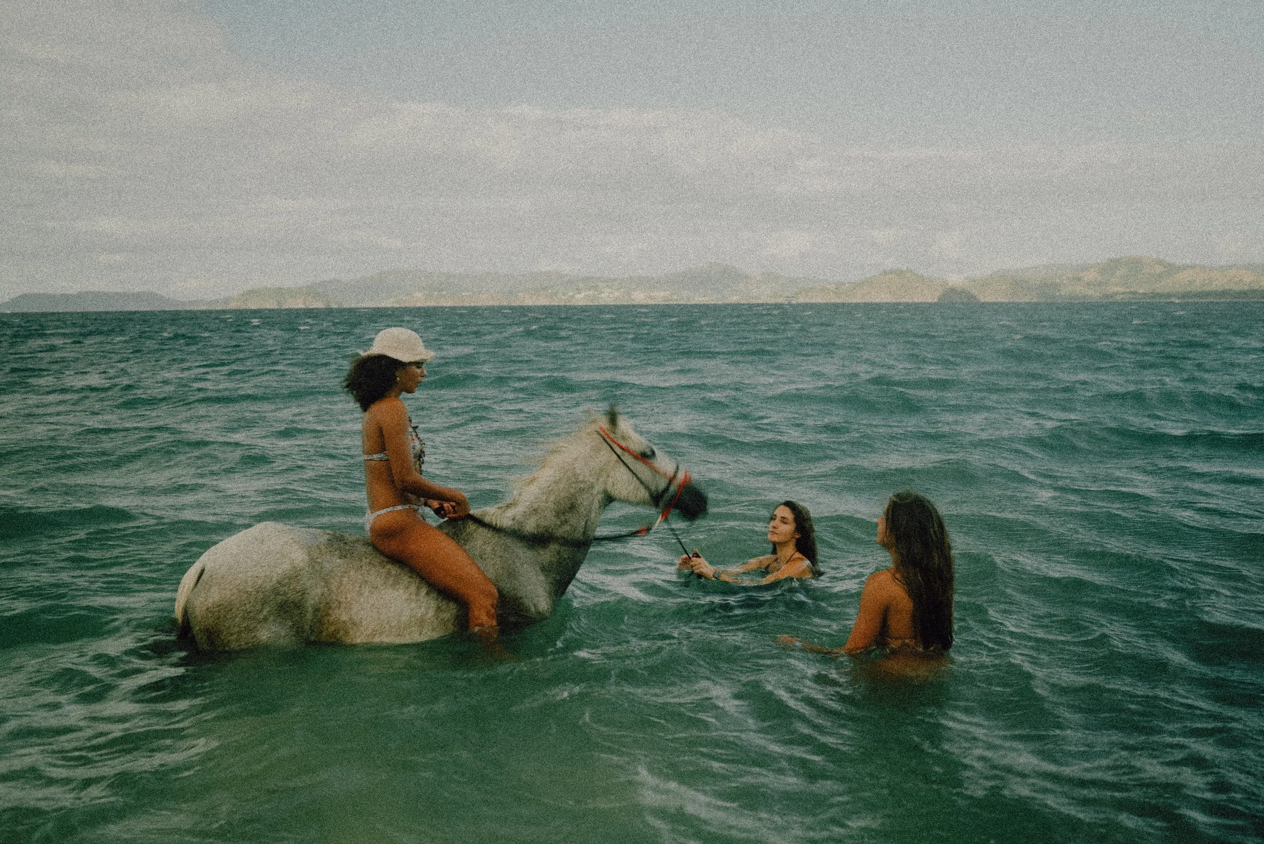 A two-hour tour involving a 60-minute beach ride and 30 or more minutes swimming in the ocean with your horse.